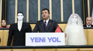 TBMM'de ilginç eylem: Mahmut Arıkan kürsüye gelin ve damat mankeniyle çıktı